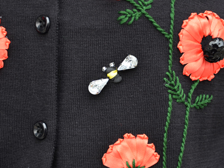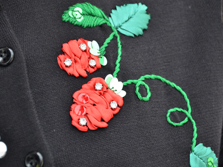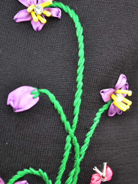 雄しべの部分はキラキラと輝くスパンコールで、花びらはリボンで立体的に作られています。