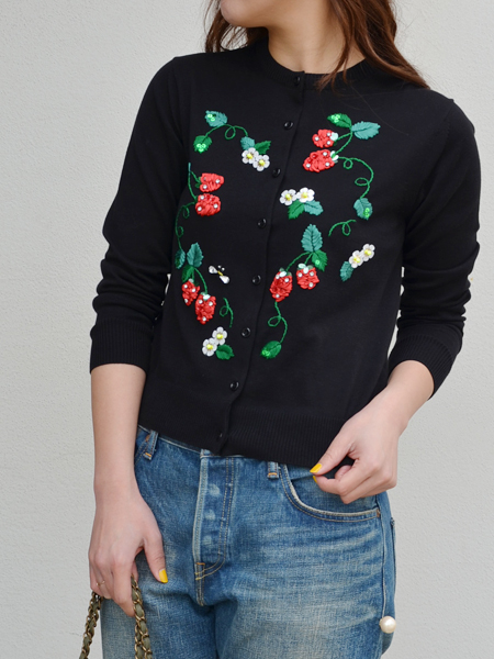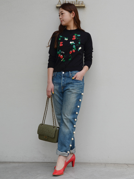 いちごの刺繍にパールモチーフのTROSORのデニム合わせがとても個人的にツボでした♡