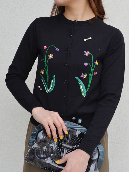 カーディガン全面に刺繍が贅沢に入ったカーディガン。