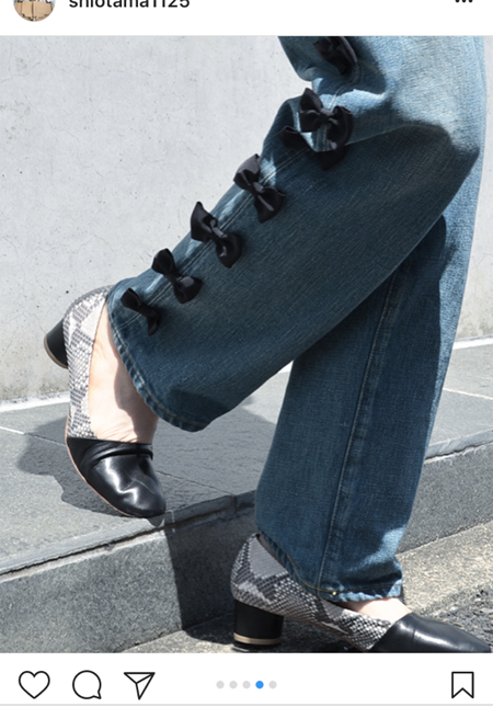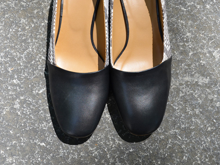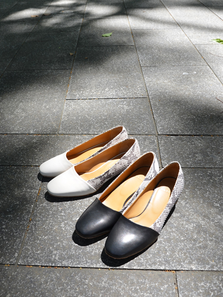 スニーカーサンダルは真夏にしつこいくらい履こうかと思っていますが、まさに今の季節や、真夏を過ぎたあたりには真ん中のKATIMのパイソンパンプスが大活躍です。