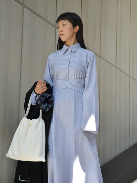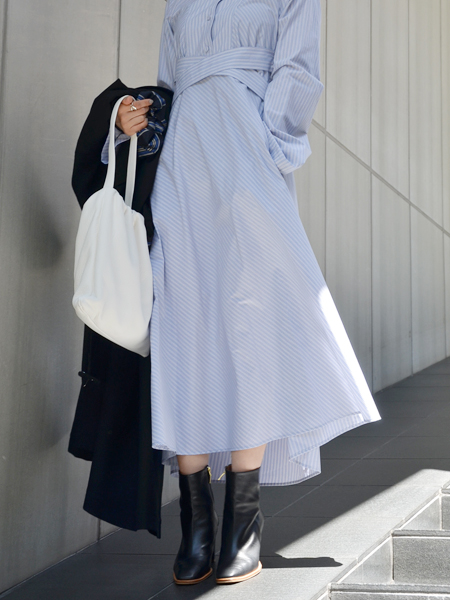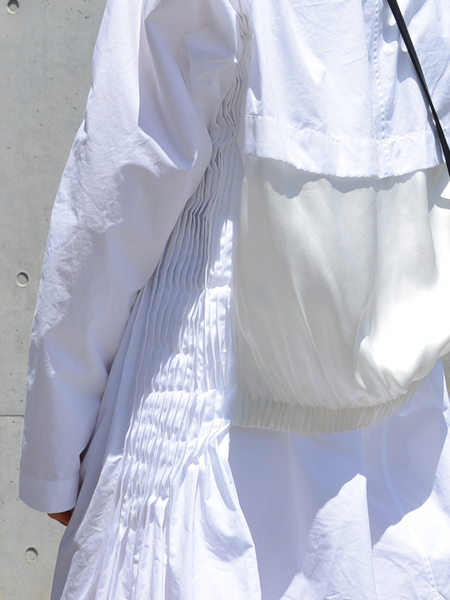 こちらのワンピースも着物のように、一枚の生地から細かくタックを入れて立体に仕上げています。