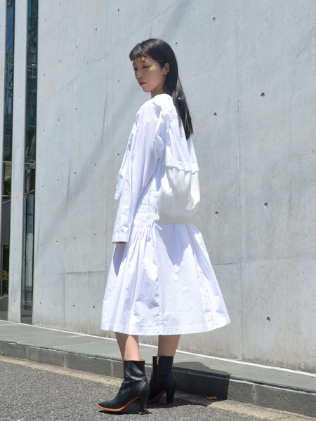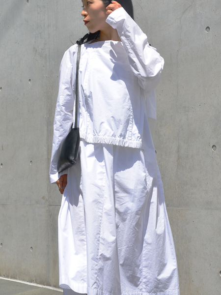 ハリ感のあるシャツ素材で、ふんわり空気を含んだようなシルエットは楽チン。且つモード。