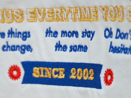 Tシャツにも入っていた“The more things change.”のメッセージロゴ刺繍。