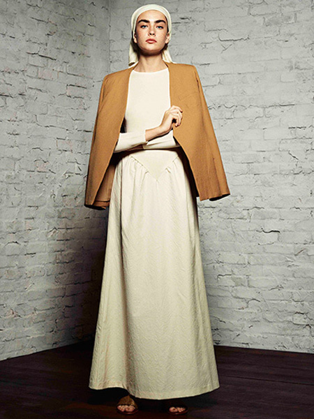 シスターを思わせるような清楚で気品あるワンピースにセンシュアルなバックスタイルや体に沿うラインのギャップを加えたデザイン。