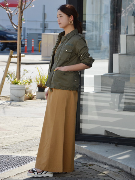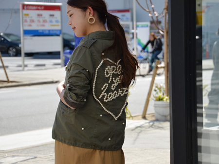 TRSORのパール付きミリタリージャケットでカジュアルに合わせてみました。