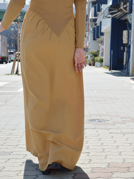トップスがタイトだとごわつかずレイヤードできるのでマキシスカートとして着回せると着まわしの幅が広がってまた新鮮に感じることができますよ。