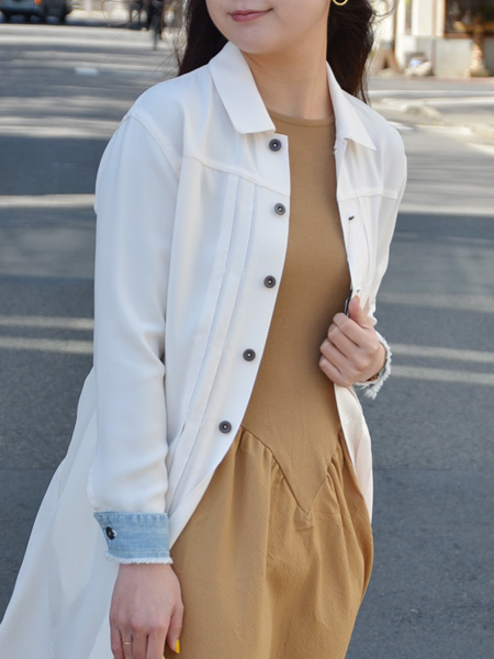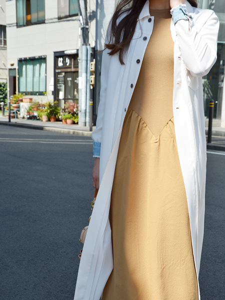 ロングシャツの軽いアウターはこういったワンピースでもバランス良くレイヤードすることができるのでとても重宝してます♡