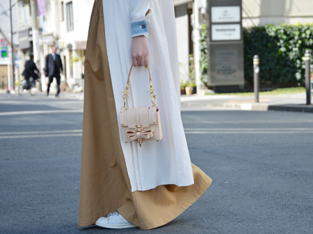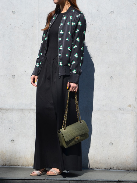 今ならブルゾンなど軽い羽織りを着て合わせたいですね。