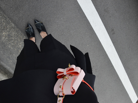 私だったら甘さは最小限に、ピンクが引き立つ色としてオールブラックでコーディネートしたいです。