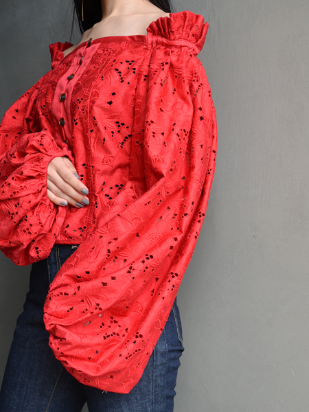 ▶︎▶︎▶︎mame Floral Cutwork Lace Off-Shoulder Shirt
