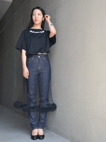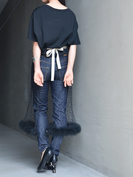 ▶︎▶︎▶︎Tu es mon TRESOR Feather tulle aporon edge 1wash