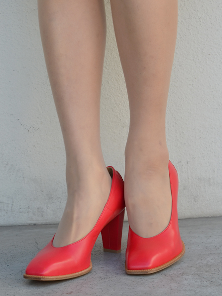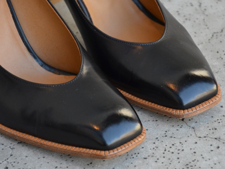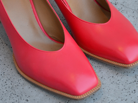 深すぎず浅すぎない甲の部分からは女性らしさを醸し出し、足先がつまらないスクエアカットは、足先全体まで重心を分散することにより前のめりになるのを防ぎます。