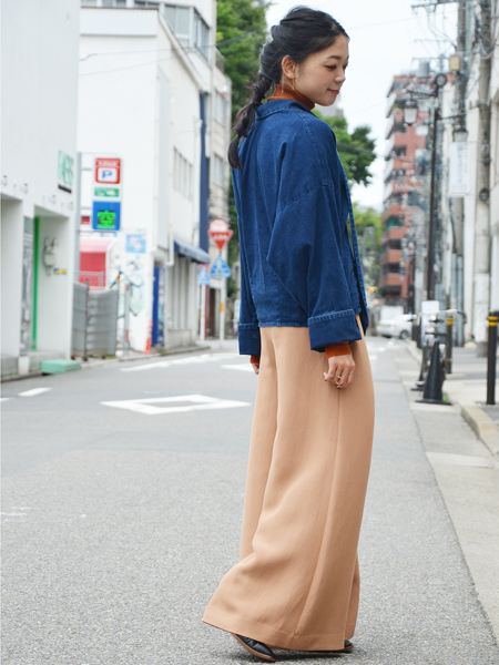 柔らかくて軽いデニムに細いプリーツが施され、テキスタイルの良さを感じられるカジュアルなアイテム。