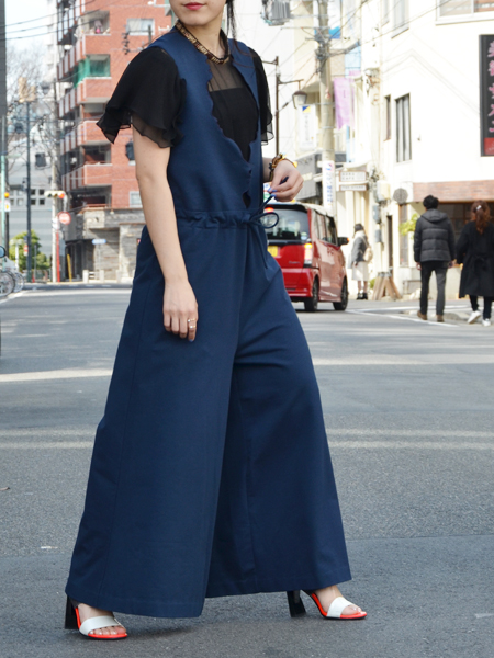 1枚ペラっと着ただけなのに、雰囲気たっぷりに見せてくれるオールインワン。