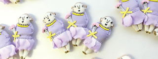 ニットアイテムに使われている同素材の糸が巻かれている羊のタグは、お修理ができるように配慮したもの。ブランドのイニシャルの「M」を用いた小さなプレートを洋服に付けるなど、昔の洋品店におかれているような温かみのある服作りを目指してきました。