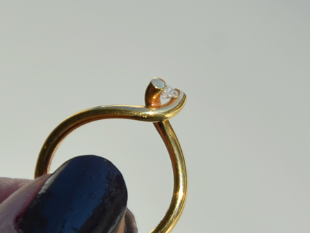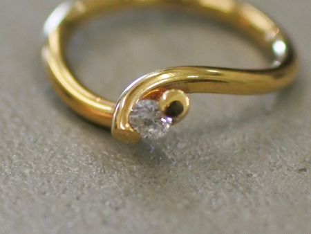 ひねった先のダイヤモンドは台座ではなくツメで留め、浮遊しているかの様。