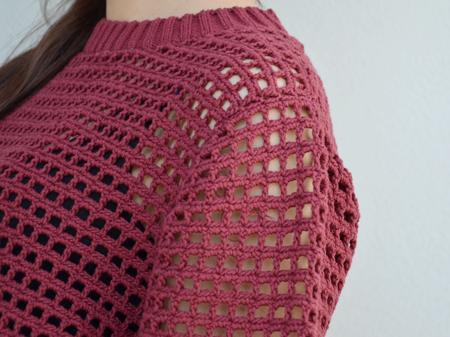 フロントは首元のリブで切り返しが入ったのみというシンプルさで、手編み感を前面に感じます。