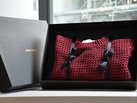 リボンに包まれたニット。とても高級感があります。