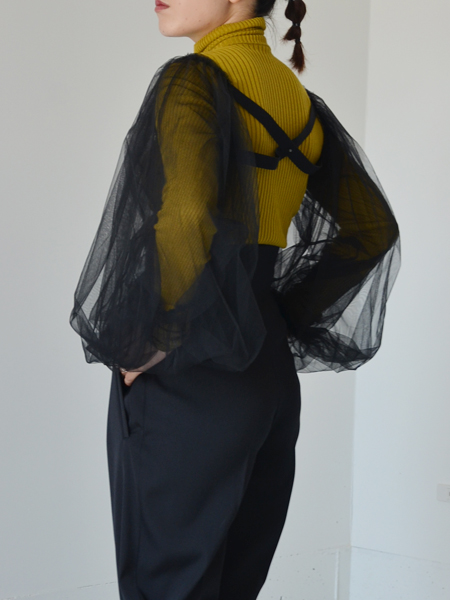 ボリュームのある袖も、チュールの透け感で肩が大きく見せないのが嬉しいポイント。