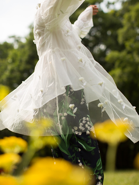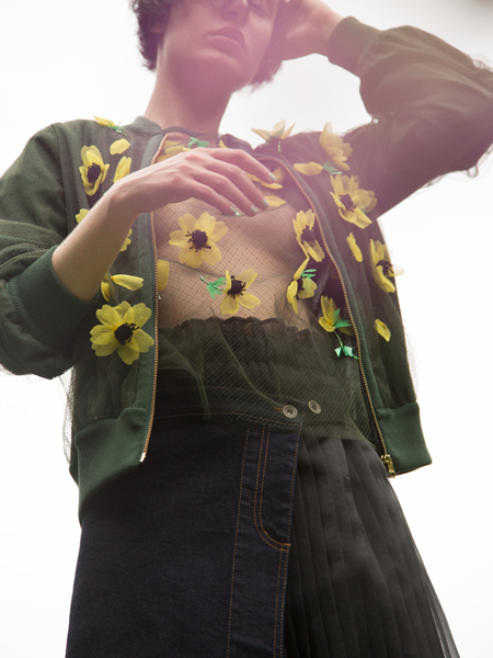 その上にアネモネが咲き誇っているMUVEILらしいブルゾンです。