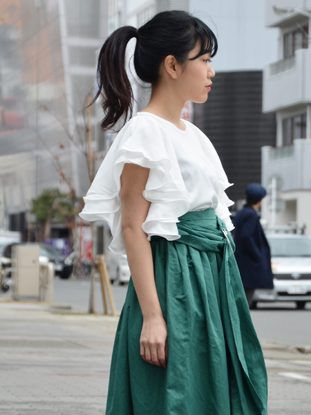 スカートは動くたびに風をはらんで様々な表情をみせてくれるので、どの角度から見ても素敵なのです。