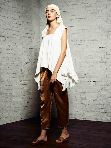 near.nipponのスラックスで綺麗めに合わせていましたが、裾が揺れるこのデザイン。
