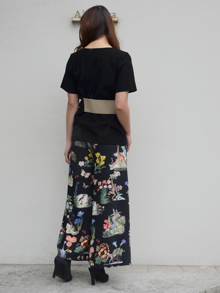 動物やお花、昆虫たちがリアルなタッチで描かれていてmullerのトップスを合わせることでより大人なコーデに仕上がるのがツボです。