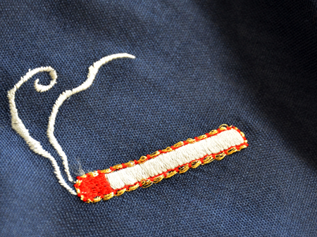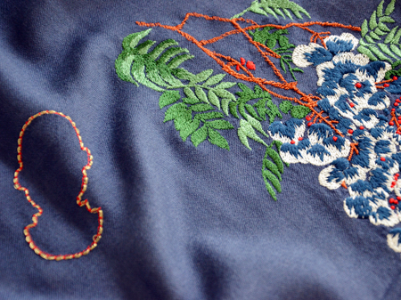 こちらにも刺繍されていた今季を象徴する藤や鳥、人の輪郭、タバコなどのモチーフ。