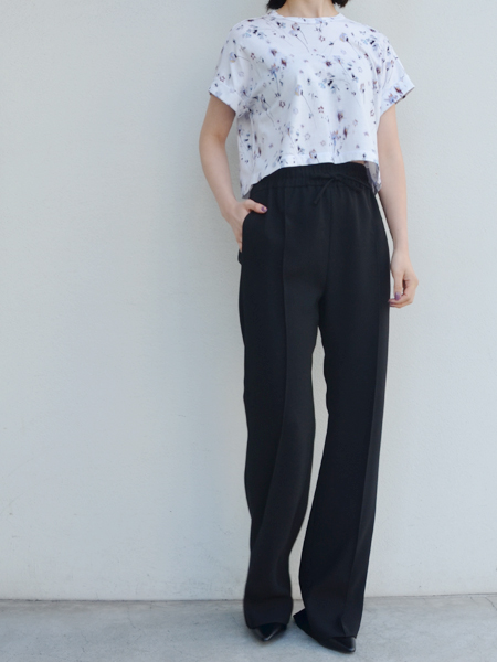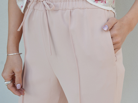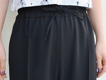 ウエストはシャーリングとストリングでフィットさせたパンツです。