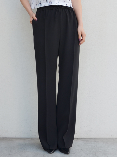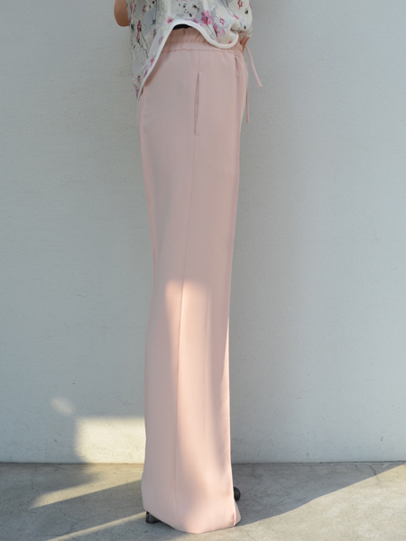 上品な見た目の素材に対して、カジュアルな印象のゴムのウエスト。このギャップが面白いパンツです。