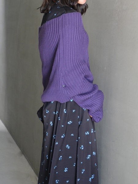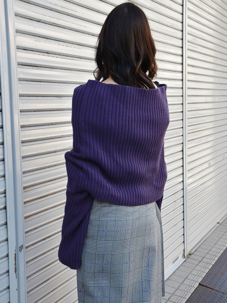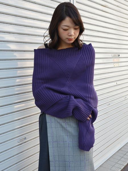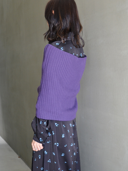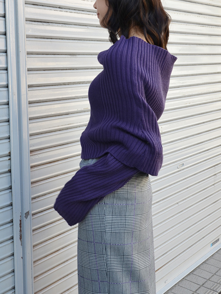 肩まで落としてオフショル風にしたり、首元まで上げてボトルネック風にと雰囲気を変えて着られるのが面白い。