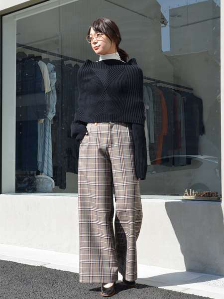 変わった形をしたニットなので実際に手に取ってもらえる機会が多く、その中でもこういう着方可愛いね♡とお客様と会話が盛り上がります。
