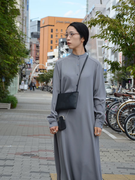 Graphpaperの定番ワンピースに、AetaのバッグとEDのポーチ。