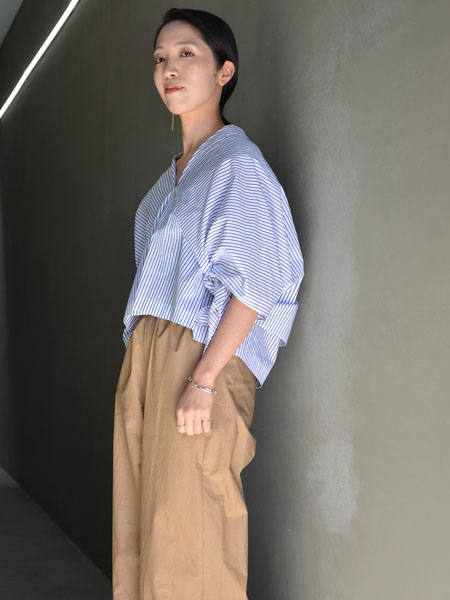 これは生地を変えてAKANEの定番として毎シーズン登場しているのですが、今回のカーディガンは薄手の素材なので、春だけでなく秋に着ても良さそう。