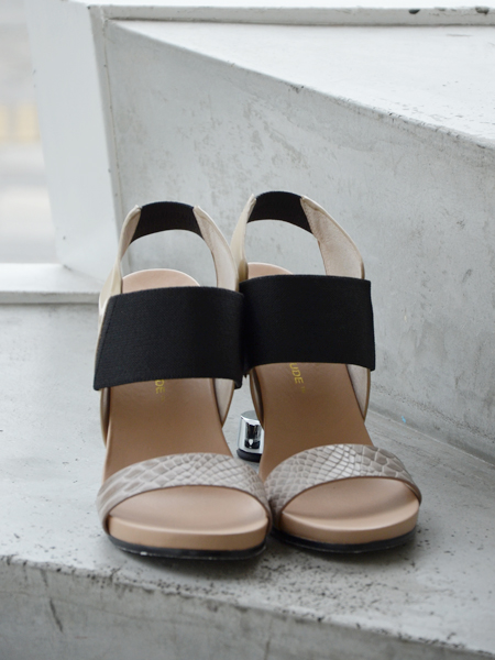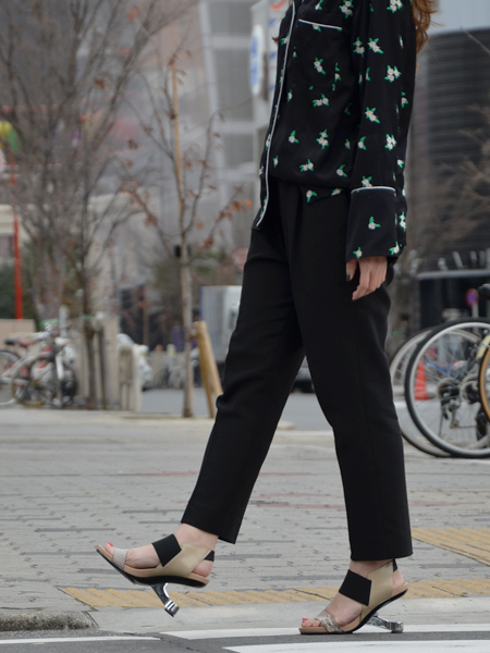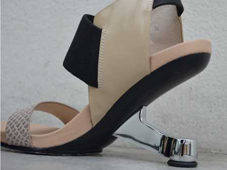 存在感あるデザインですがハイヒールの持つエレガントさは削がれることなく、生かされ女性らしさを醸し出します。