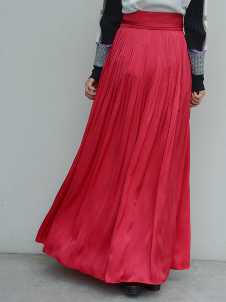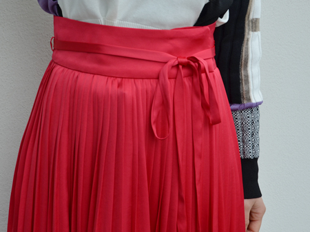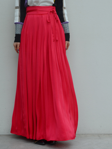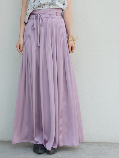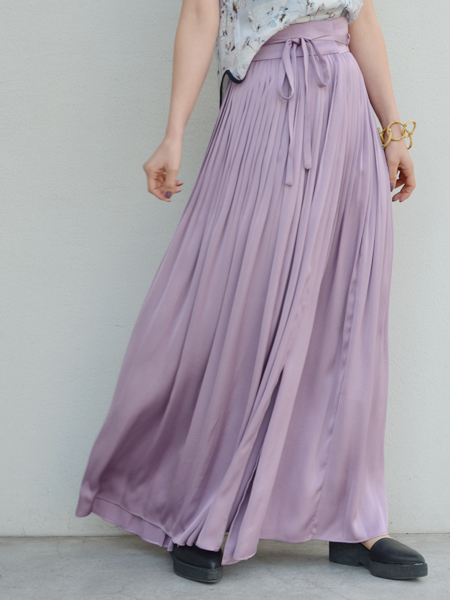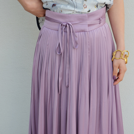 ウエスト部分から細かいプリーツが入っているのですが、裾までしっかりプリーツになっている訳ではなく、途中から消えていく感じも、歩いている時に優雅に揺れる感じもとても素敵です。