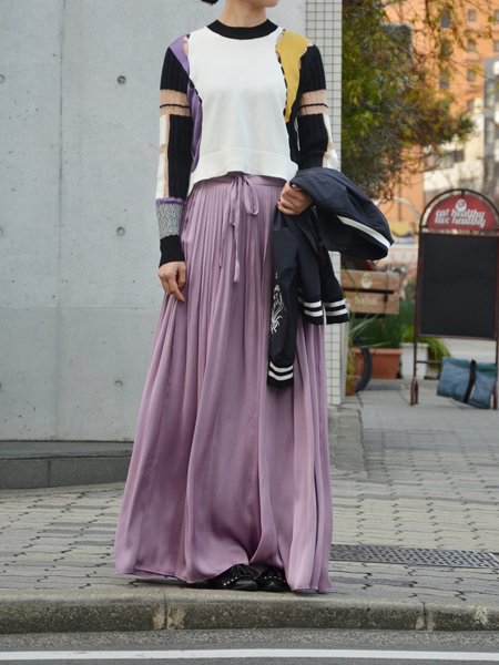 そして、一緒に合わせているのはトロンとしっとりとした素材が美しいマキシスカート。