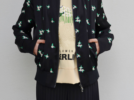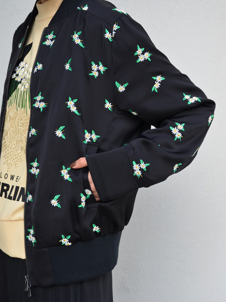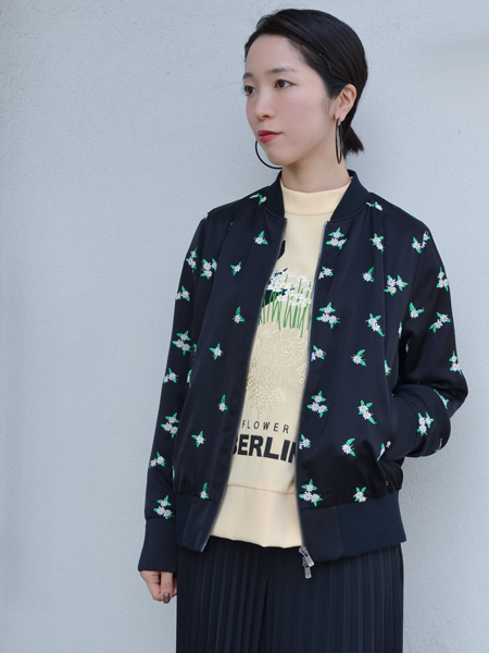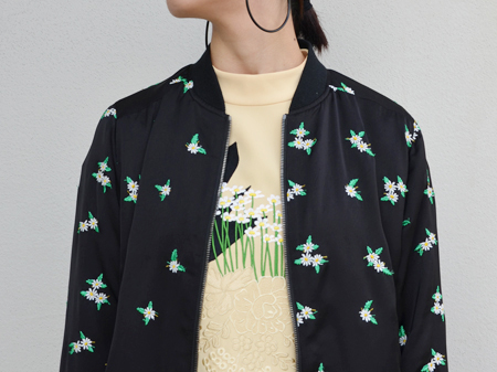 MA-1を思わせるような辛口なボディに、女性らしい花柄のバランスが絶妙なアウターです。