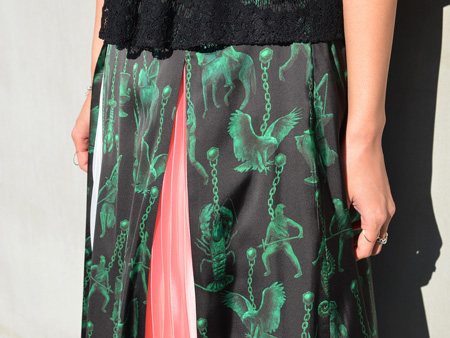 オリジナルの柄がモードなスカートを引き立たせる優秀なトップス。