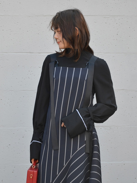 ▶︎RITO ASYMMETRY SALOPETTE STRIPED DRESS