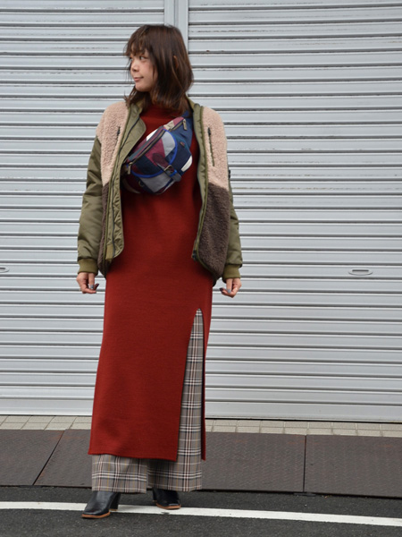 暗くなりがちな冬コーデですが、アウターに色物って華やかになっていいですね^^