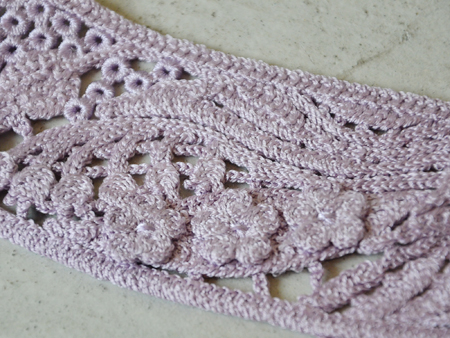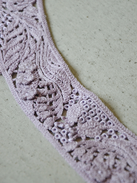 〝クロシェレース〟と言いましたが、かぎ針で細い糸を編みレースを表現した。と言った方が分かりやすいかと思います。
