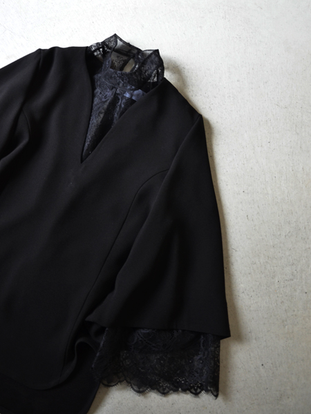 ボディはシンプルで洗練され、首元のレースは上品で華やか。