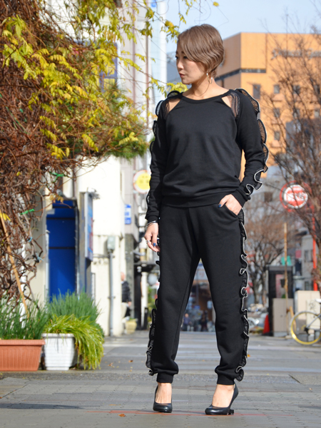 ▶︎▶︎▶︎Zayan The Label Vena Sweater Pants V1(サイドフリルパンツ)