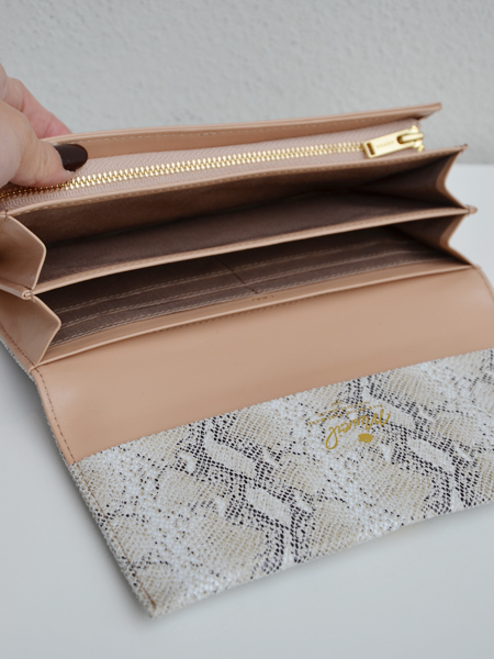 従来のパイソン素材よりも柔らかいピッグレザーを使用しているため、手馴染みもとても良いです。
