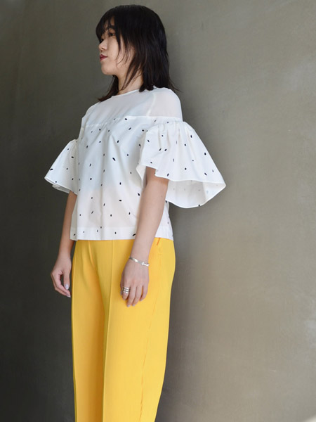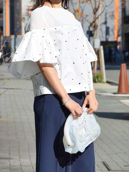 春夏シーズン、AKIRA NAKAのコレクションによく登場するボリューミーなフレアスリーブ。