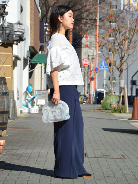 シルエットは独特ですがモノトーンなので多彩なボトムスとあわせられるのも良いですね。