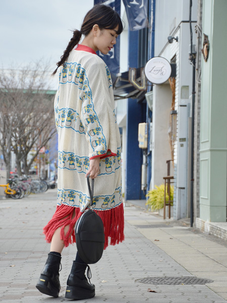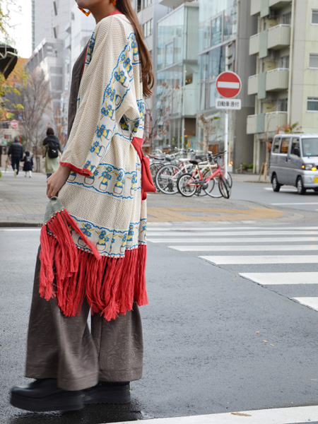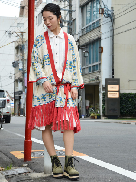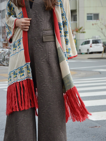 強めの赤もこの雰囲気に中和されて、羽織ってみると意外と難しくないですよ。