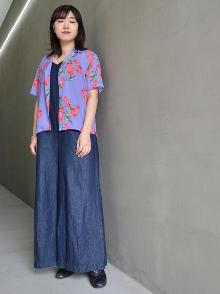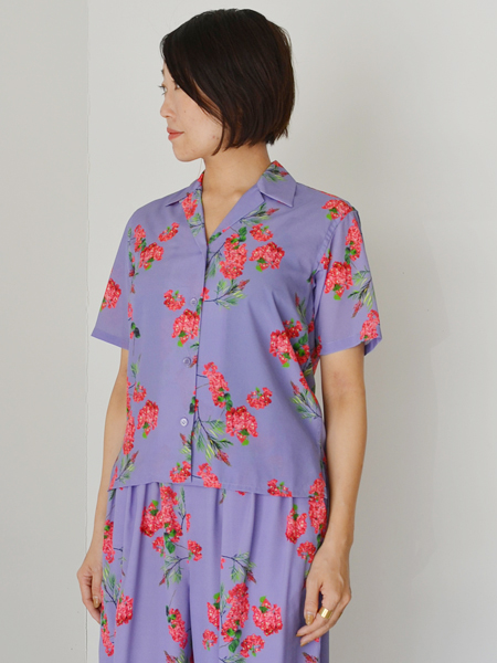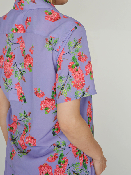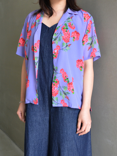 こちらがそのオリジナルプリントを使用した開襟シャツ。