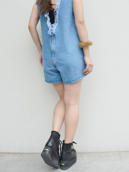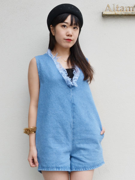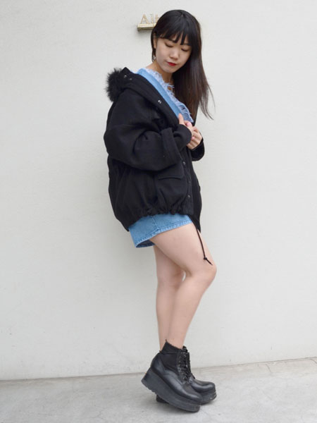 私はLOOKの、ビッグデニムジャケットとコンパクトなロンパースのコーディネートが好きだったので、オーバーサイズのブルゾンと合わせてみました。